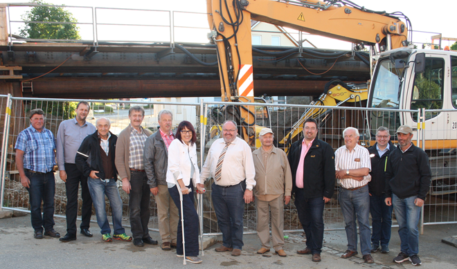 Im Rahmen der Maßnahmen am Bauwerk wird hier unter anderem die Straße auf 6 Meter verbreitert und beidseitig ein jeweils 1,5 Meter breiter Bürgersteig geschaffen. Die finale Ausdehnung der Unterführung ist an den erstellten Fundamenten bereits gut erkennbar. Bürgermeister Ludwig Robold erläuterte vor Ort, dass der Volksfestauszug kommende Woche vom Rathaus über die Ziegelstraße und somit durch die Bahnunterführung der B15 verlaufen wird, da die Unterführung aktuell aus Sicherheitsgründen auch für Fußgänger nicht nutzbar ist. Im anschließenden Monatstreffen hatten die Teilnehmer wieder die Möglichkeit, die Themen der Gemeinde in gewohnter Runde mit Bürgermeister und Gemeinderäten zu diskutieren.